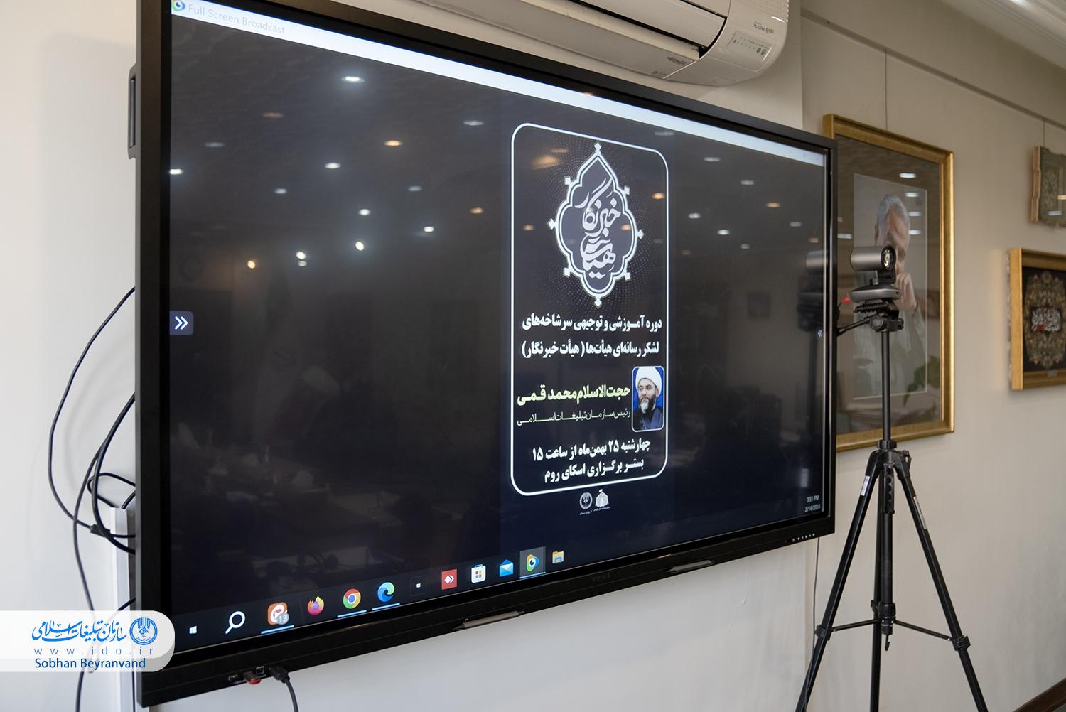 نشست وبیناری دوره آموزشی و توجیهی سرشاخه‌های لشکر رسانه‌ای هیأت‌ها «هیأت خبرنگار» ظهر امروز ۲۵ بهمن‌ماه، با حضور حجت‌الاسلام والمسلمین محمد قمی رئیس سازمان تبلیغات اسلامی برگزار شد.