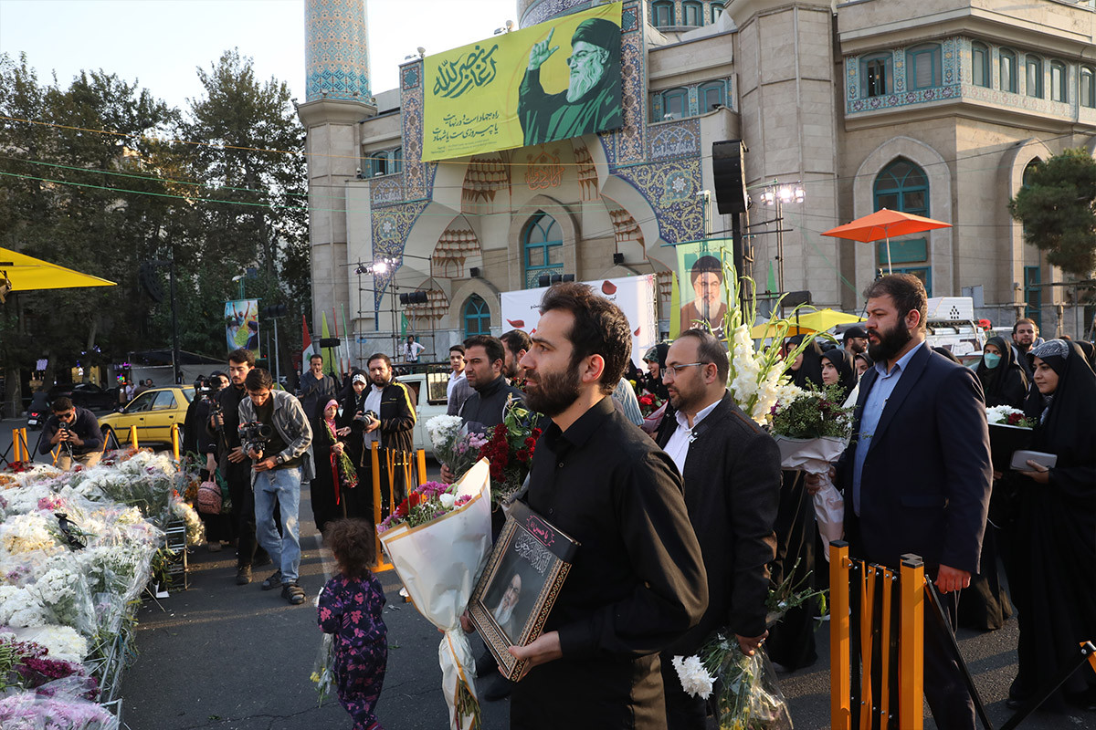 مراسم ادای احترام به شهدای مقاومت و سید مقاومت شهید سید حسن نصرالله با حضور گروه‌های مختلف مردمی در میدان فلسطین برگزار شد.