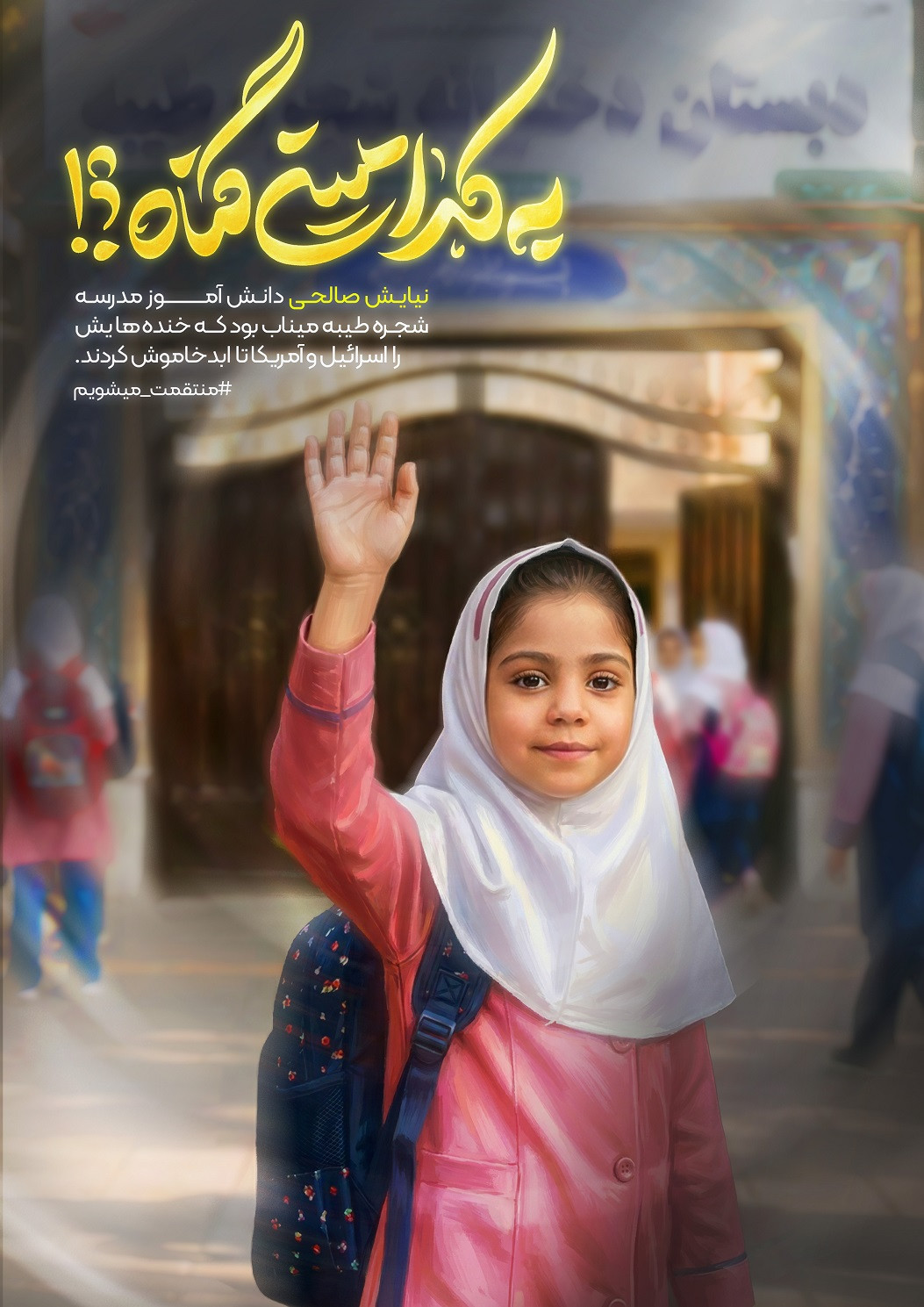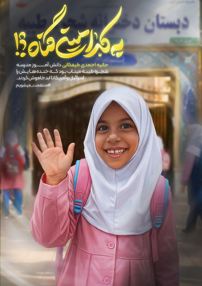 این‌ها قاب‌هایی است از دانش آموزان شهید دبستان شجره طیبه میناب. دانش آموزان شهیدی که تنها چند ساعت پس از آغاز جنگ تحمیلی دوم آمریکایی و صهیونی رمضان ۱۴۰۴ به دست کودک کشان امروز جهان پر پر شدند. این دبستان در همان ساعات ابتدایی جنگ با دو بمب هدف حمله قرار گرفت. بمب اول منجر به شهادت گروهی از دانش آموزان شد و بمب دوم دانش آموزان و معلم این مدرسه را که در نمازخانه مدرسه پناه گرفته بودند به شهادت رساند. به یاد ۱۶۵ دانش آموز شهید این دبستان. مرکز رسانه خانواده امید پیش از این و همزمان با جنگ تحمیلی دوازده روزه نخستین مجموعه طرح‌های گرافیکی به کدامین گناه را به یاد کودکان شهید حمله رژیم صهیونیستی به اماکن مسکونی منتشر کرده بود و این مجموعه به شهدای عزیز میناب تقدیم شده است.